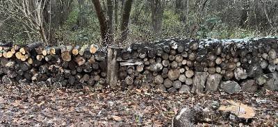 Udearealudvalget har vi sikret, at ikke alle træstammer bliver sendt til afbrænding. Vi har skåret stammerne op og har bygget videre på vores vedmur. Det nyeste stykke skal der lidt jord på, så bliver den flot. Men muren er ikke kun til pynt, der er flere ideer med den. Med mængden ved/træ forsinkes CO2 frigivelse og en stor del af CO2’en bliver bundet i humus (Det stof som bliver tilbage ved nedbrydning af ved). Ud over klimadelen så er vores vedmur god for biodiversiteten. Mellem stammestykkerne er der plads til masser af småkryb, og som noget vigtigt, i nedbrydningsprocessen dannes der en stor mængde trøske(rådrester) , og i dette kan der leve laver fra mange forskellige biller, bl.a. humlebille og grøn guldbasse. Biller som både er smukke og gode bestøvere.